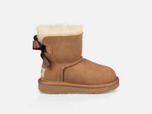 Sa slatkim detaljem (jedna mašna na stražnjem dijelu), izdržljivom strukturom i dodanom pjenom za cjelodnevnu udobnost, poboljšani model Mini Bailey Bow II prilagođen je za vaše mališane. Karakteriziraju ga posebno dizajnirani Treadlite by UGG™ potplat i topla unutrašnjost koja odbija vlagu (od UGG pure™ vune). Izrađen je od 17 mm dvostrane ovčje kože (Post Applied treatment - prethodno obrađene za zaštitu od vlage i mrlji) s UGG etiketom na peti.