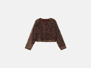 Bluza od tila iz kolekcije Actitude s vezom od perlica i mikrošljokica po cijeloj površini. Dolazi sa širokim raglan rukavima te podstavom. Širokog je kroja.