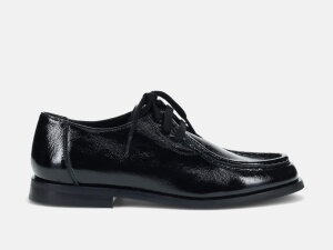 Cipele s malom potpeticom (2 cm) talijanskog branda Donna Lumine izrađene su od kože (gornjište od lak kože) dok im je potplat gumeni radi lakšeg hodanja. Vežu se vezicama s prenje strane.