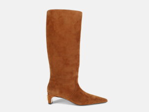 Čizmice The Suede Mel s potpeticom (4,5 cm) branda Marc Jacobs izrađene su od brušene kože, uložna tabanica je kombinacija tekstila i umjetnog materijala dok je potplat od kože. Ukrašene su logom branda na potpetici.