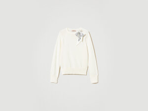 Twinset džemper izrađen od 85% organske mješavine pamučne vune dolazi s uklonjivim povezom s logotipom preko cijele dužine. Ima okrugli ovratnik i duge rukave sa rebrastim rubovima.