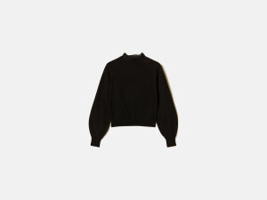 Pletena dolčevita izrađena je od mješavine viskoze s čipkastim obrubom oko vrata. Ima duge, široke, rukave te otvor u obliku suze s gumbima na leđima.