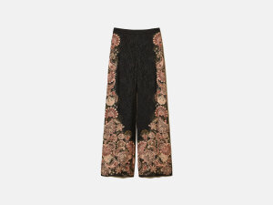 Žakard hlače palazzo kroja s cvjetnim printom, ekskluzivno za Twinset. Kopčaju se sa strane. Idealne za zabave i formalne prigode.