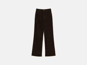 Hlače ravnog kroja od mješavine pamuka s patentnim zatvaračem i gumbom s oznakom brenda. Imaju pet džepova te pločicu s ovalnim T logotipom straga.