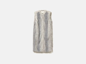 Duga jakna bez rukava od umjetnog krzna s efektom nojevog perja iz kolekcije Actitude. Kopča se na kukicu sprijeda ima umetnute bočne džepove te podstavu.