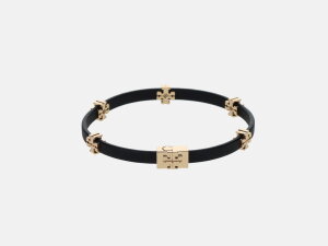 Narukvica Eleanor Bio branda Tory Burch izrađena od recikliranog mesinga i inovativne kožne alternative koja je izdržljiva, luksuzna i otporna na blijeđenje. Ukrašena je Double T logom branda.