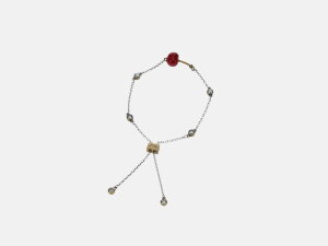 Narukvica branda Marc Jacobs iz kolekcije Trinket bez nikla ima sjajni privjesak u boji trešnje uparen s nježnim kristalnim, staklenim kamenom.