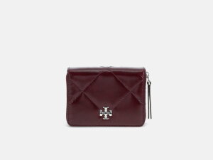 Novčanik Kira Diamond Quilt Distressed Small Zip-Around branda Tory Burch dolazi izrađen od kože u dimenzijama 11,5x8x2 (d/v/š). Zatvara se patentnim zatvaračem. Unutar novčanika nalaze se odjeljci za kreditne kartice te pretinac za kovanice koji se zatvara patentnim zatvaračem. Ukrašen je proštepima po koži.