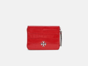Novčanik Kira branda Tory Burch branda Tory Burch dolazi izrađen od kože u dimenzijama 11,5x8x2 (d/v/š). Zatvara se patentnim zatvaračem. Unutar novčanika nalaze se odjeljci za kreditne kartice te pretinac za kovanice koji se zatvara patentnim zatvaračem. Ukrašen je proštepima po koži.
