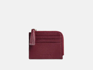 Novčanik Tassel talijanskog branda Coccinelle dolazi u dimenzijama 10x8,5x1 cm (d/v/š). Izrađen od kože, dok je podstava izrađena od umjetnog materijala. Zatvara se s patentnim zatvaračem, te s vanjske strane ima pretince za kreditne kartice.