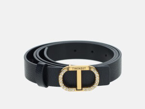 Remen talijanskog branda Twinset (širine 2,5 cm) ukrašen je metalnom kopčom u obliku ovalnog T. Izrađen je od kože.