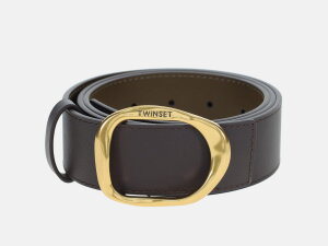 Reverzibilni remen talijanskog branda Twinset ukrašen je metalnom kopčom. Izrađen je od kože.