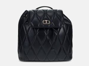 Ruksak talijanskog branda Twinset dolazi u dimenzijama 29x30x11 cm (d/v/š). Izrađen je od umjetnog materijala. Unutar ima bočni pretinac koji se zatvara patentnim zatvaračem. Zatvara se na preklop i kopča s magnetnom kopčicom. Ispod preklopa ima remen koji se zateže. Ima jednu kratku ručku (maksimalna visina 9 cm) i dvije duge ručke za nošenje preko ramena (maksimalna visina 60 cm).