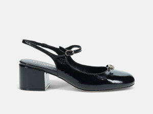 Sandale s blok potpeticom (5 cm) talijanskog proizvođača Twinset izrađene su kože. Uložna tabanica izrađena je od kombinacija kože i poliuretana dok je potplat gumeni radi lakšeg hodanja. Elastični dodatak poviše pete olakšava oblačenje i pruža dodatnu udobnost. Ukrašene su kožnom mašnicom i ovalnim T.