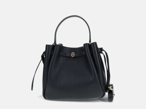 Torbica Romy Bucket branda Tory Burch dolazi u dimenzijama 22x21,5x9,5 cm (d/v/š). Izrađena je od kože dok je podstava izrađena od umjetnog materijala. Torbica se zatvara magnetnom kopčicom te sadrži podesivi pojas za kopčanje s logotipom. Unutar torbice nalazi se duboki džep s patentnim zatvaranjem. Može se nositi samo u ruci ili preko tijela. Ima jednu kratku ručku (maksimalna visina 13,5 cm) i još jedan dugi, podesivi, odvojivi remen (maksimalna visina 55 cm) za nošenje preko ramena.